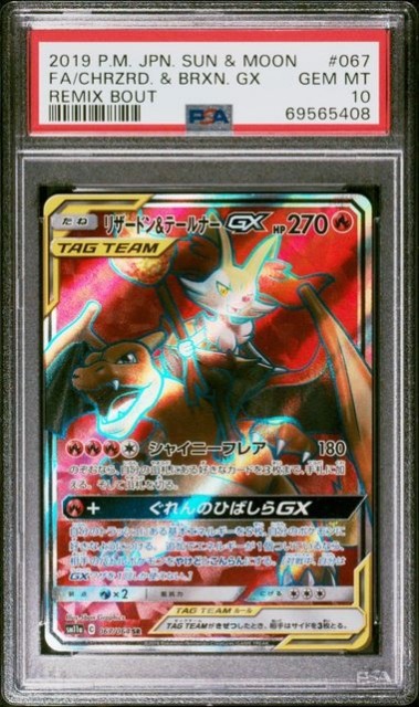 Charizard & Braixen Tag team fra det japanske settet Remix Bout, gradert til PSA 10.